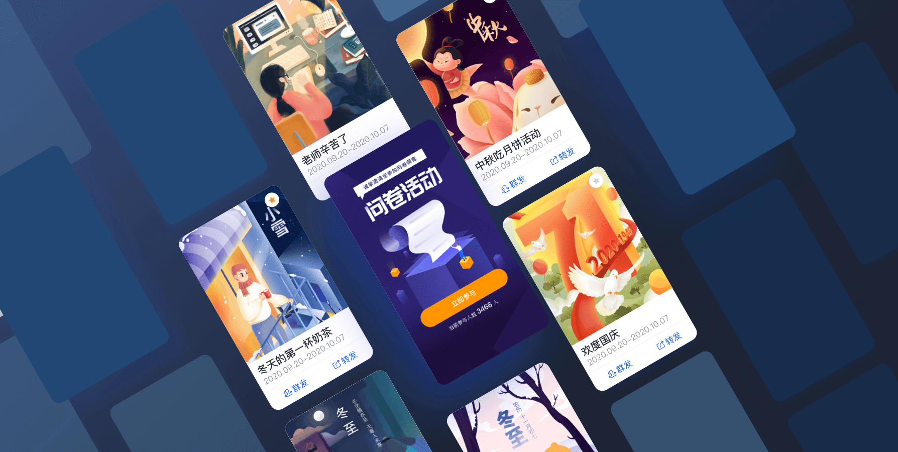 活动模板库覆盖各节日、各场景活动需求。支持个性化设定内容,满足企业品牌个性展示